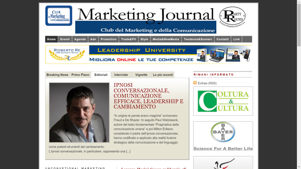 Si parla di ipnosi conversazionale, comunicazione efficace, leadership e cambiamento nell’editoriale di questo numero del Marketing Journal (www.marketingjournal.it), il primo quotidiano online rivolto alla Mar-Com e alla Business Community.